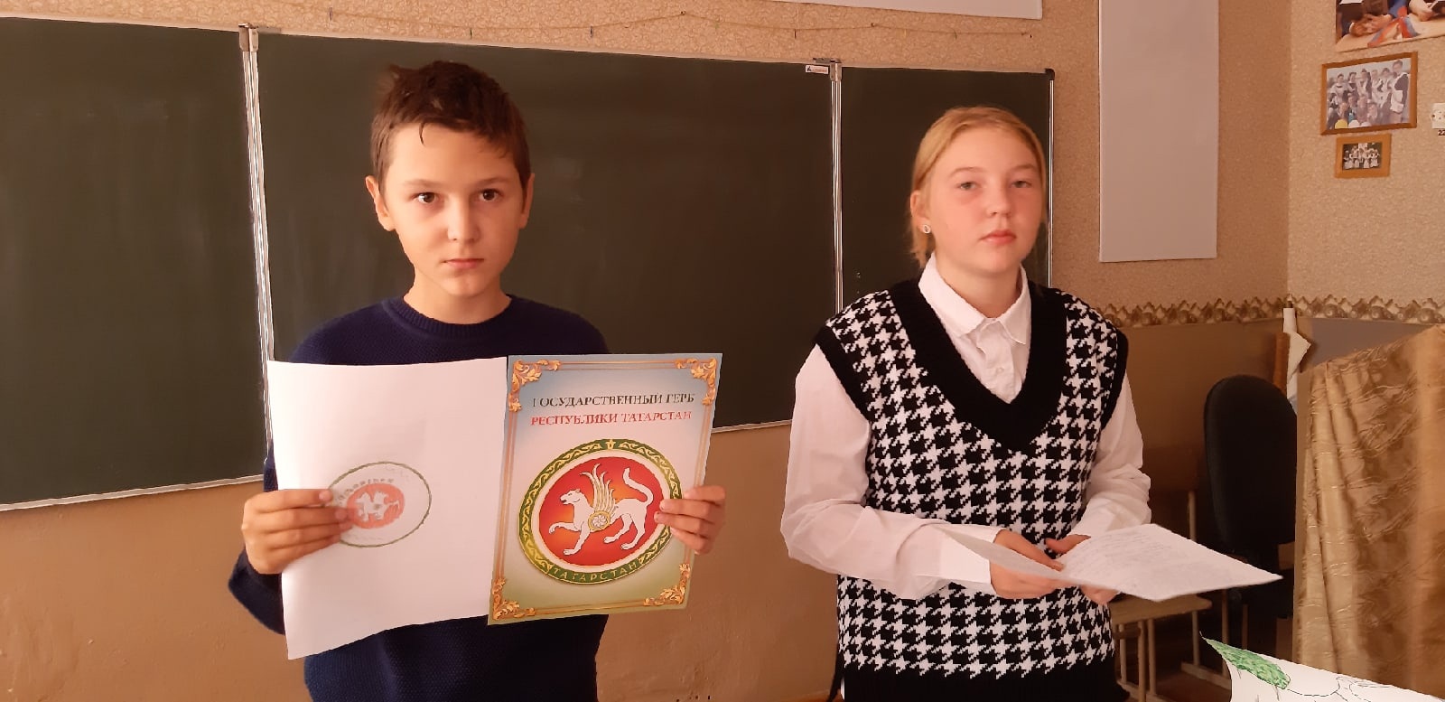 В рамках урока "Разговоры о важном" в 6 классе прошло занятие на тему "Государственные символы России и Татарстана"