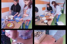 В первый день каникул в 9а прошёл мастер - класс по изготовлению торта.