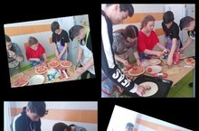 Как хорошо, когда в школе есть место для приготовления пищи. Вот и 8а класс с классным руководителем Хайруллиной Г. А. в первый день каникул приготовили пиццу и молочный коктейль.