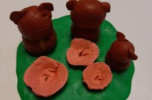 Саяхов Костя,2кл. Слепили медведей из сказки"Три медведя", они разные по величине и тарелки у них большая, средняя и маленькая для Мишутки