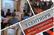 3 сентября в "День солидарности в борьбе с терроризмом" учащиеся 4,5,6 классов собрались, чтобы почтить память погибших детей, родителей, учителей-всех людей, которые были захвачены и убиты террористами в городе Беслан.