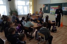 В целях активизации работы по профилактике детского дорожно-транспортного травматизма и выполнения требований по безопасности дорожного движения вблизи образовательных учреждений, защиты жизни и здоровья детей от угрозы ДТП 7 сентября 2018 года учителями начальных классов была проведена сюжетно- ролевая игра «Советы дяди Степы» с участием инспектора ОГИБДД Карпова И.П. Дети в игровой форме отработали навыки безопасного поведения на дорогах.