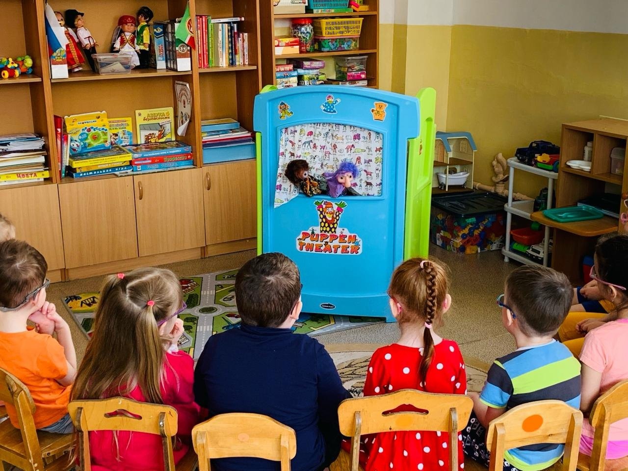 В средней группе №2 день начался с познавательных бесед, из которых дети узнали, где и когда родился театр, какие жанры театрального искусства существуют, об истории создания кукольного театра, как вести себя в театре». Вместе с воспитателями дети рассказали сказку «Теремок», «Репка». -