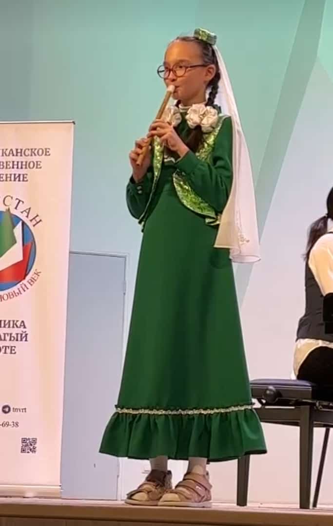 В этом концерте приняла участие наша ученица - Боярова Вероника. Она исполняла музыкальное произведение на старинном башкирском народном духовом музыкальном инструменте - курае. -