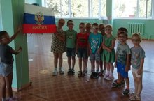 Сегодня воспитанники 1 группы в музыкальном зале познакомились с флагом Российской Федерации. Под звуки гимна флаг был поднят.