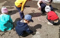 В этот день мы читали сказки, провели конкурс рисунков на асфальте. Соревновались у кого получится самая настоящая "Золотая рыбка"