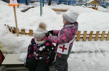 В рамках военно--патриотического месячника среди учащихся 1-4 классов и старших и подготовительных групп прошла военно-патриотическая игра "Зарница"