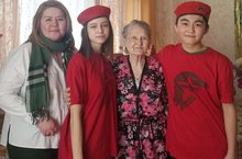 В ходе реализации прокта "У войны не женское лицо" Юнармейцы школы с председателем СТОС Шарафутдиновой И.М. поздравили с 90-летним юбилеем труженника тыла Выборнову Лидию Петровну