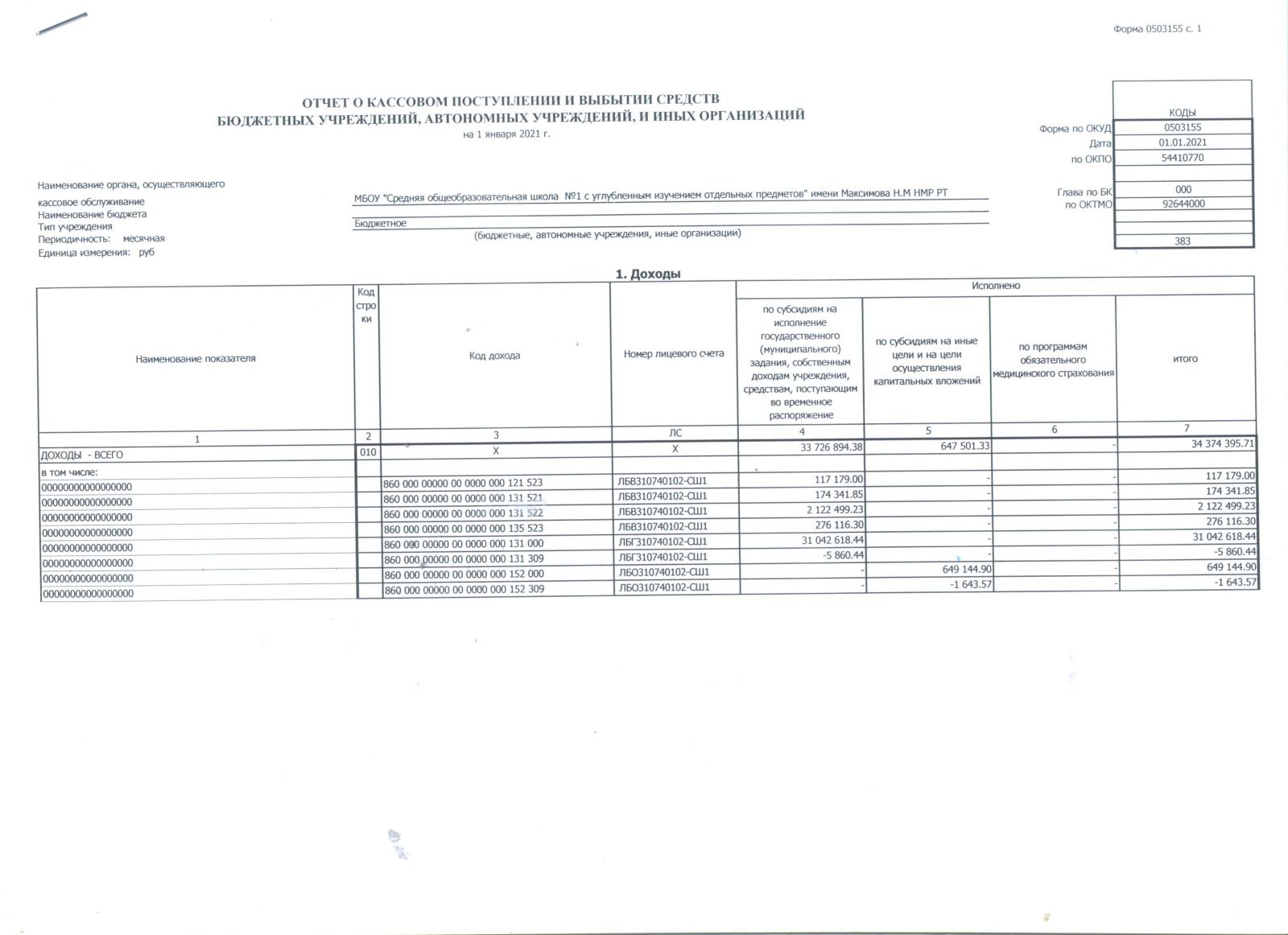 Информация о поступлении финансовых и материальных средств на 1.01.2021 г.