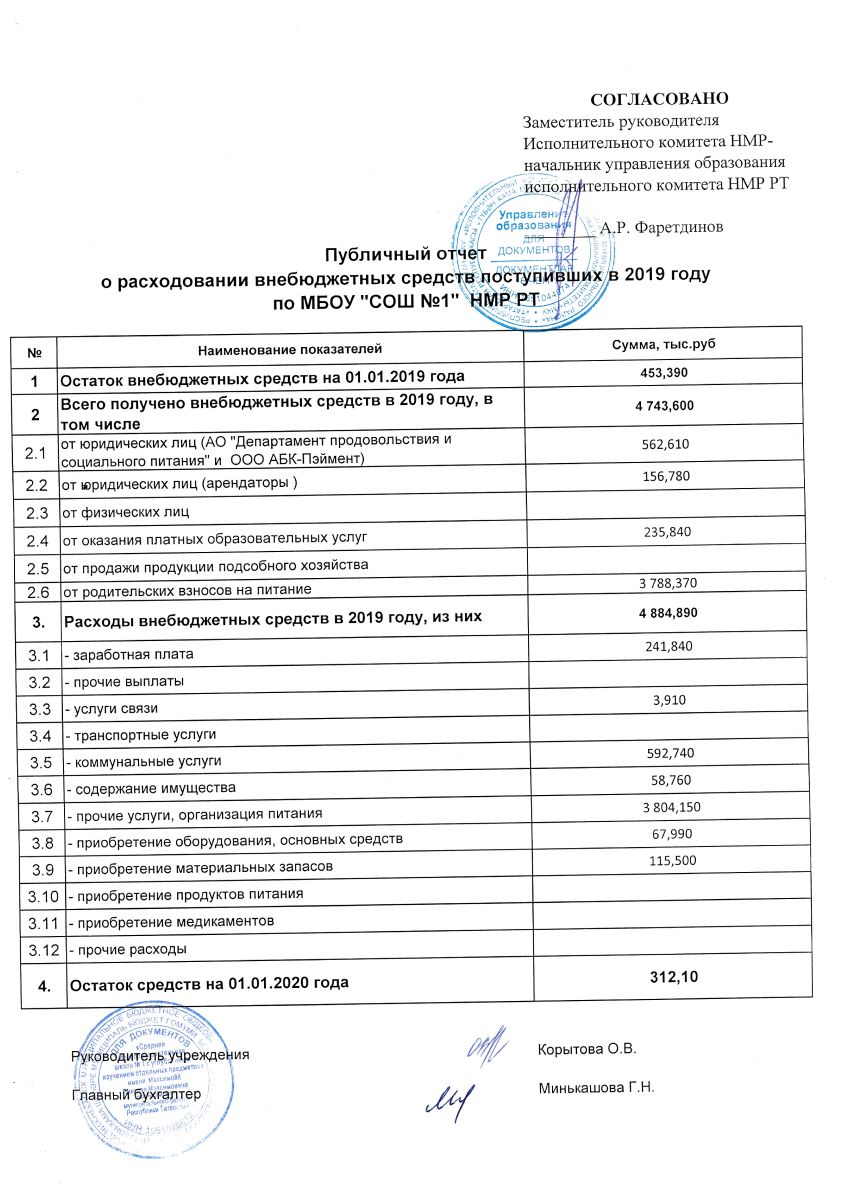Публичный отчет о расходовании внебюджетных средств за 2019 год