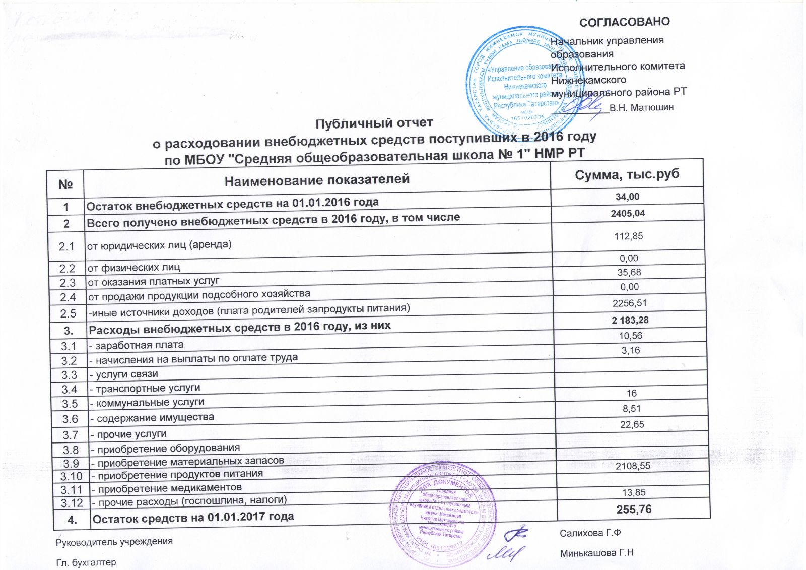 Публичный отчет о расходовании внебюджетных средств за 2016 год