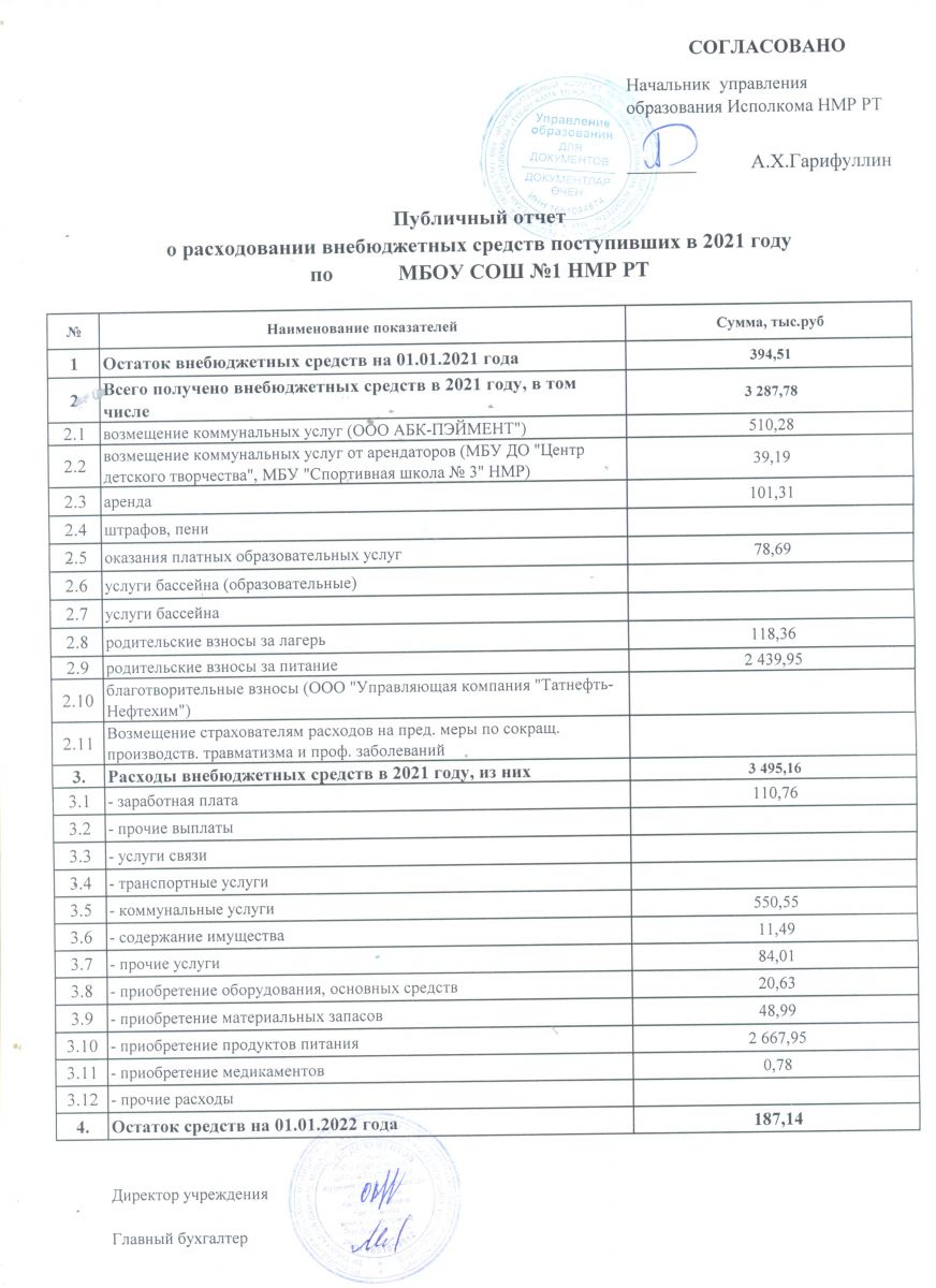 Публичный отчет о расходовании внебюджетных средств за 2021 год