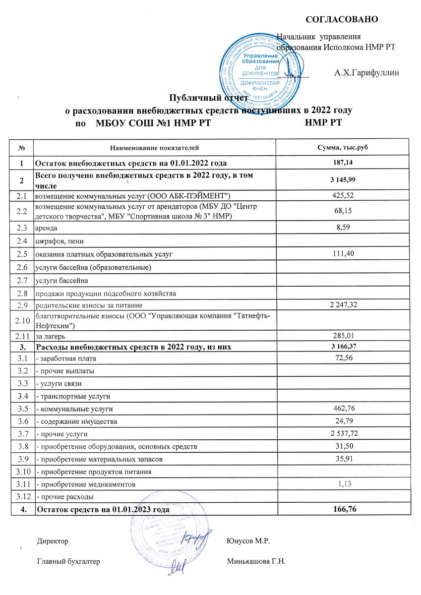 Публичный отчет о расходовании внебюджетных средств за 2022 год