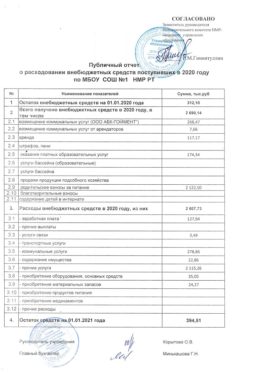 Публичный отчет о расходовании внебюджетных средств за 2020 год