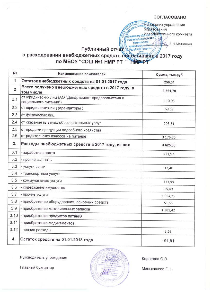 Публичный отчет о расходовании внебюджетных средств за 2017 год