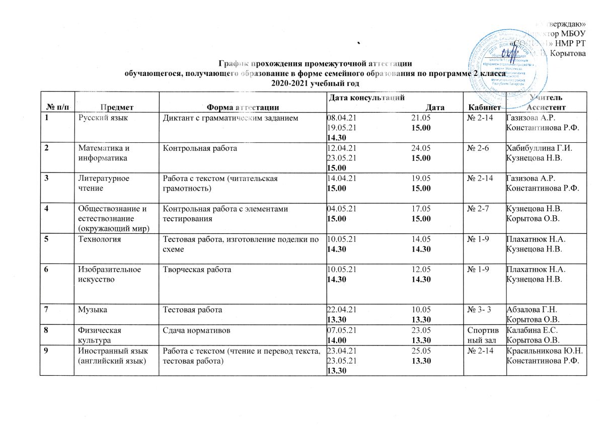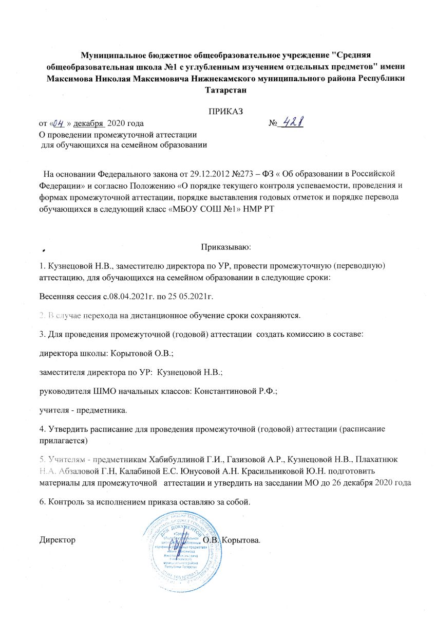 Приказ о проведении промежуточной аттестации для обучающихся на семейном образовании