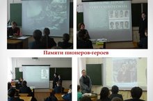 В рамках месячника военно-патриотического воспитания в 5-6 классах проходят классные часы по страницам Великой Отечественной войны. Ребята знакомятся с подвигами своих сверстников – пионеров-героев, погибших в борьбе с фашистскими захватчиками, ведут поисковую работу, создают презентации.