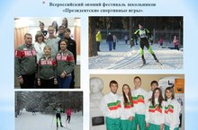 C 1 по 7 декабря учащиеся нашей школы Бликин Алексей (9б), Мартьянова Алина (9б), Мартьянов Тимур (8б), Батуева Юлия (7в), Маслова Диана (7г) впервые приняли участие во Всероссийском «Зимнем фестивале школьников «Президентские спортивные игры» по лыжным гонкам, которые прошли в столице Южного Урала г.Челябинск. Они выступали в составе команды из Татарстана, так как завоевали это право, став победителями в Республиканских соревнованиях по лыжным гонкам среди учащихся в 2013-2014 учебном году.