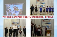 20 ноября среди учащихся 5-х классов был проведен конкурс агитбригад по теме «Осторожно, огонь!». В нем приняли участие учащиеся всех 5-х классов. Все выступления были подготовлены на хорошем уровне, представлены в форме агитбригады, использованы сценки, презентации, декорации, музыкальное сопровождение, показали свои знания по бережному обращению с огнем.