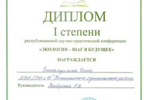 С работой "Создание инсектицидных средств путем утилизации курительных табачных изделий" Дина стала победителем Республиканской НПК "Экология-шаг в будущее", которая была организована Министерством образования и науки РТ совместно с Казанским федральным университетом.