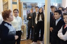 На стенде, посвящённом своей родной школе 10, они увидели своих учителей, узнали историю школы.