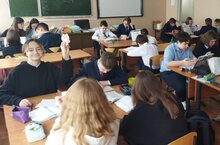 Иванова Елена Геннадьевна провела игру среди 6А и 6Г классов. Ребята соревновались в склонении целых числительных "Считать грамотно!" (одна из сложных тем в программе русского языка). Ребята в командах на время склоняли сложные числительные. Выполнить работу без ошибок было непросто, но, помогая друг другу, ребята справились!