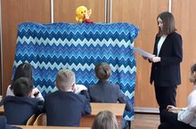28 февраля в рамках недели русского языка и литературы прошло познавательное мероприятие для учащихся 5-х классов. Учащиеся 10 класса подготовили презентацию об истории создания русского народного театра. а потом показали пятиклашкам небольшую сказку "Колобок". Ребята были в восторге! Анастасия Граханцева, поделилась своими впечатлениями: "Сегодня из рассказов старшеклассников я узнала, что первый русский театр появился в 19 веке.