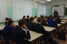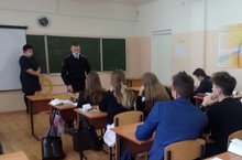 Профориентация кысаларында Түбән Кама районы эчке эшләр бүлеге лейтенанты Миндубаев Илфат Илфак улы 8, 11 сыйныфлар белән Россия МВД вузларына керү буенча әңгәмә үткәрде.