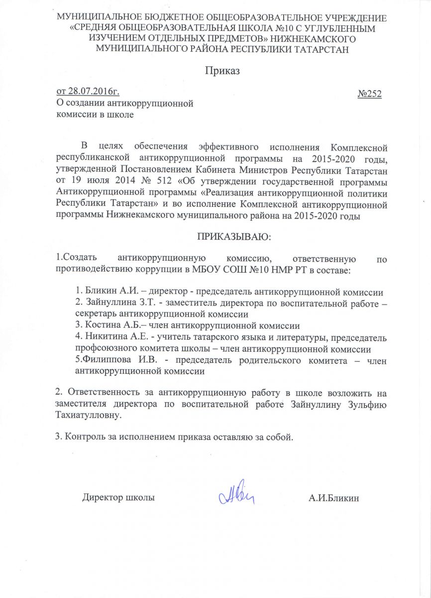 О введение в действие локального акта О комиссии по антикоррупционой политике