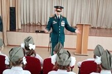 Ватанга мәхәббәтне мөмкин кадәр иртәрәк, ягъни башлангыч сыйныфларда тәрбияләргә кирәк. Бүген, башлангыч сыйныфлар атналыгы һәм хәрби-патриотик белем бирү айлыгы кысаларында 3А һәм 3Б сыйныф укучылары чик сакчысы, эчке эшләр министрлыгы полковнигы Курашкин М.А белән очраштылар. Укучылар полковникны зур кызыксыну белән тыңладылар, сораулар бирделәр. 3 нче А сыйныф укучылары бүләк итеп җыр башкардылар.
