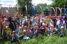 Здесь живём мы очень дружно, здесь веселье без границ.А когда дождёмся лета, то вернёмся мы сюда,