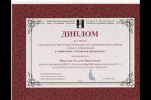 Диплом за III место в конкурсе на Грант Главы Нижнекамского муниципального района в области образования в номинации "Авторская программа" награждается Ситдикова Юлия Викторовна учитель русского языка и литературы МБОУ "Средняя общеобразовательная школа №11 с углубленным изучением отдельных предметов"