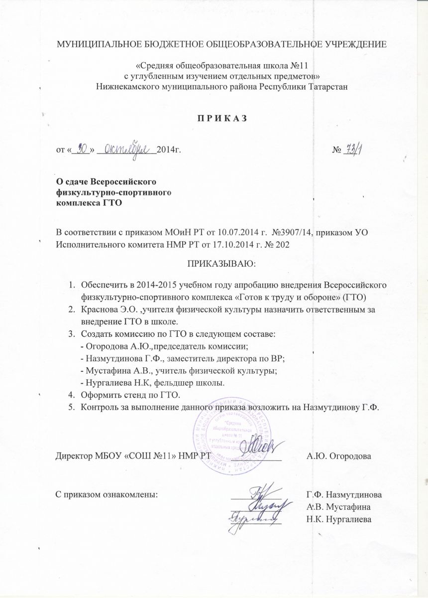 Приказ по школе о сдаче ГТО (Читать)