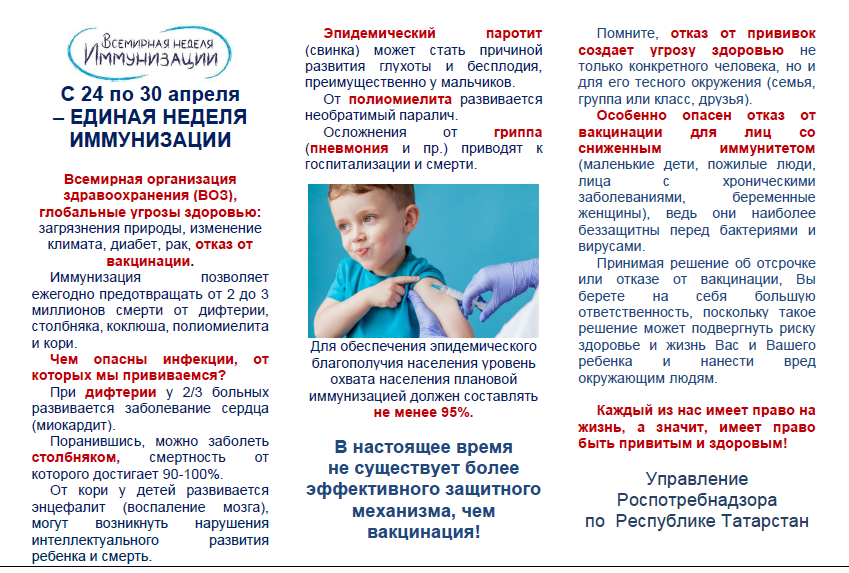 В Российской Федерации с 25 по 29 апреля 2022 года проводится Единая неделя иммунизации.