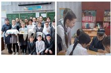Сегодня состоялась экскурсия в библиотеку для учащихся 1а класса. Ребята познакомились с выставкой, приуроченной к году родных языков в Республике Татарстан, узнали о правилах посещения библиотеки и почитали детские журналы.