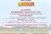 Ученики нашей школы активно приняли участие в муниципальном конкурсе "Мое хобби". Поздравляем с победой Изгарову Анастасию.Она получила Диплом 3 степени в номинации "Страна искусства" 29.11.2016