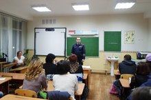 17 октября были проведены классные часы с приглашением инспектором по пропаганде ГИБДД лейтенантом полиции Фархутдиновой Ландыш Дамировны. На примерах последних ДТП, произошедших в Нижнекамске были показаны ошибки пешеходов и водителей. Продемонстрированы видеоролики, разобраны ситуации.Проведена беседа с учащимися о поведении на нерегулируемом перекрестке, при переходе внутренней дороге, использовании световозвращающих элементов на одежде в темное время суток. 17.10.2016