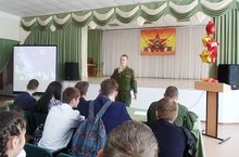 В рамках профориентационной работы прошла встреча курсантов 2 курса высшего военного танкового дважды Краснознаменного училища Шакиржанова Гафура Фаридовича и Байкова Кирилла Андреевича с учащимися 9-ых классов. Курсанты рассказали об истории училища, об условиях приема в него, престижности профессии защитника Родины. 13.05.2016