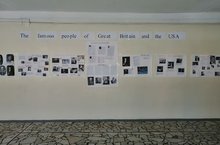 На втором этаже старшего блока оформлена выставка проектов на тему "Известные люди Великобритании и США" и стена идиом.