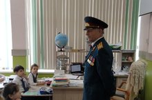 Сегодня во 2В классе прошла встреча с полковником запаса Курашкиным Михаилом Александровичем. Он рассказал о военных специальностях, о службе в армии, о устройстве военной техники.