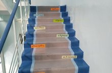 Первый день недели русского языка и литературы встретил обучающихся сюрпризом - теперь подниматься по лестницам полезно не только для здоровья, но и для грамотного произношения слов.