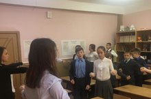 Понедельник для учащихся школы начался с зарядки в стиле "УШУ", которую провели ученики 10-11 классов.