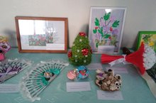 В фойе первого этажа оформлена выставка поделок, выполненных руками обучающихся 5-8 классов
