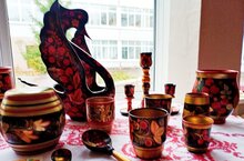 В рамках предметной недели " Искусство" была организована выставка хохломских изделий.