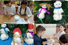 В рамках предметной недели" Искусство" для учащихся 5 А класса был проведен мастер-класс по изготовлению ёлочной игрушки в ватной технике.Тема " Снеговик".