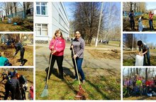 В рамках двухмесячника "ЭКОВЕСНА" учащиеся школы продолжают уборку территории школы.