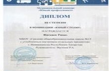 29 февраля в МАОУ "Межшкольный учебный комбинат" Нижнекамского муниципального района РТ прошёл муниципальный конкурс "Юный профессионал". Ученик 7в класса нашей школы Фатхиев Риназ занял 3-е место и получил Диплом III степени в номинации "Юный столяр". Руководитель Вагизов Р.А. Поздравляем с успехом!