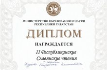Поздравляем Тураеву Елизавету с победой во II Республиканских Славянских Чтениях в номинации 1025-летие Крещение Руси. Научный руководитель Хакимова Р.Р.