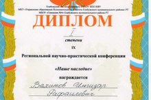 Поздравляем Вахитова Ильгизара с победой в IX Региональной научно-практической конференции «Наше наследие» за работу Христианизация современного общества, секция История. Краеведение. Научный руководитель Хакимова Р.Р.