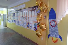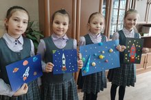 В рамках Дня космонавтики в школе организована выставка рисунков и поделок «Космические просторы» Учащиеся 1-7 классов нарисовали рисунки на уроке ИЗО и сделали поделки на уроках технологии. По итогам выставки будут отобраны лучшие работы и направлены на конкурсы республиканского и всероссийского уровней. Все участники получат сертификаты и грамоты.